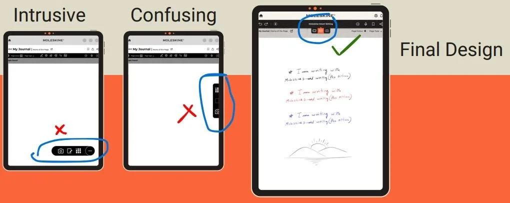 Switching between the Moleskine Smart Writing, Apple Pencil, and take a photo options